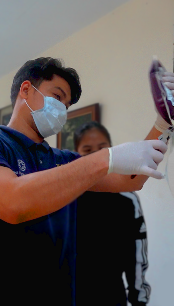 BLOOD BAG SECURED. Amiel Beltran of TMC Clark secured the filled blood bag and cut the tubing to safely conclude the blood collection, ensuring proper handling and donor safety (Gerard Laydia / Padayon UP)