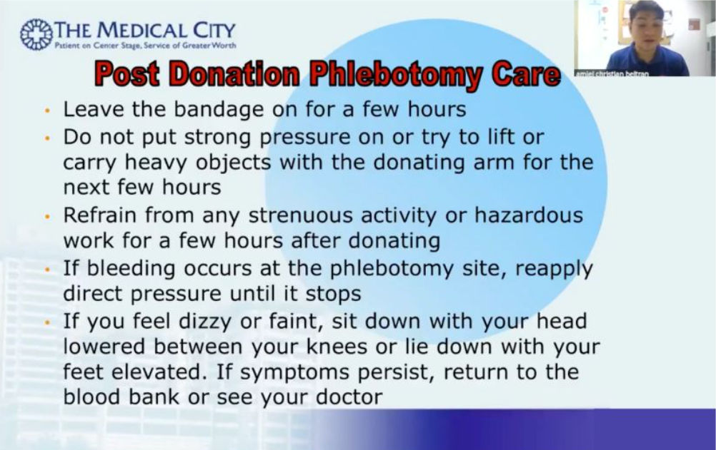 Prior to the actual blood donation activity, a virtual orientation was held on December 5 via Zoom and livestreaming to help prepare prospective donors by discussing blood donation procedures, safety protocols, and key requirements to ensure a safe and successful activity.